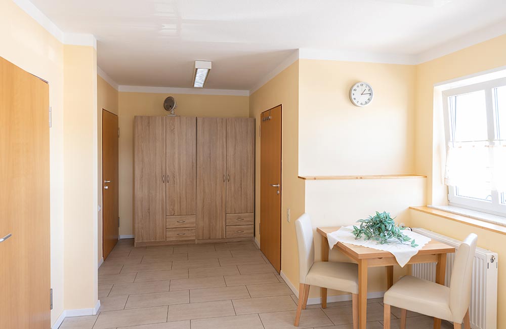 Neben der Ausstattung, die für die Pflege notwendig ist, können unsere Bewohner gerne selbst bestimmen wie sie wohnen möchten. Gerne können eigene Möbel etc. aus dem bisherigen Zuhause mitgenommen werden.